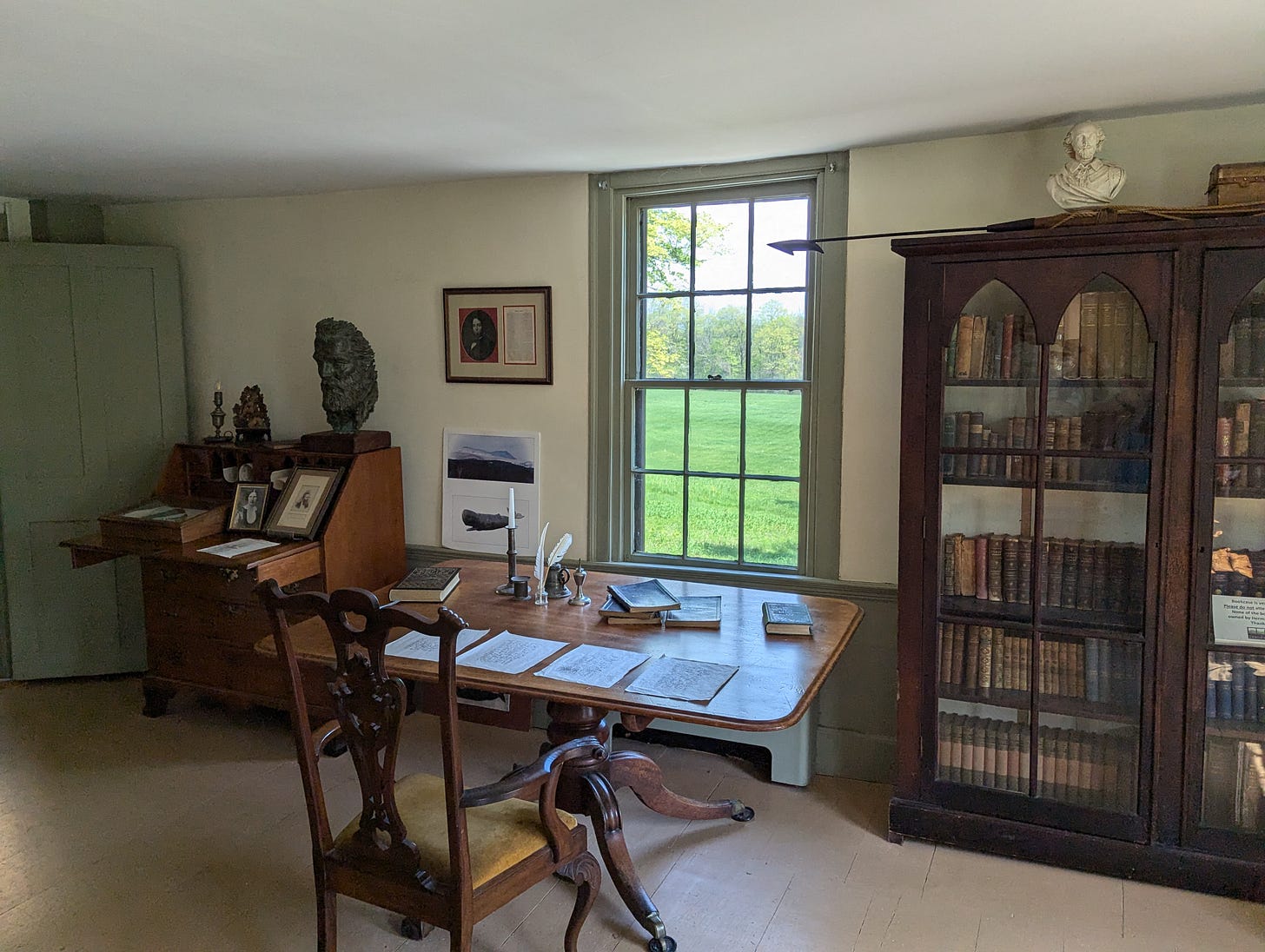 It hadn’t even occurred to me to imagine it would be placed here in Melville’s study, mere feet where he sat down to write Moby-Dick as he looked out at Mount Greylock. I can still hardly believe it.