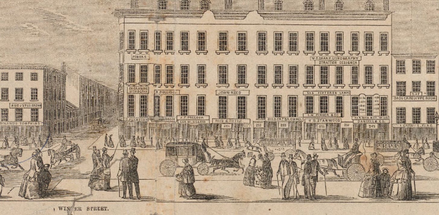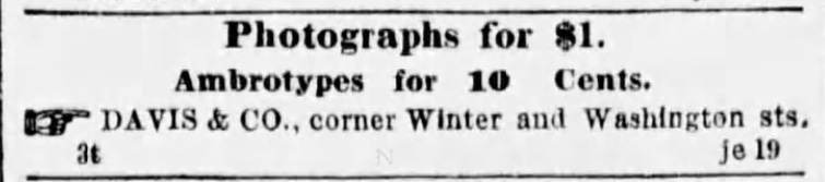 Once in Boston, Herman and Tom stowed their gear on the Meteor and walked about 15 minutes into the city toward an ambrotype shop owned by “Davis & Co.” at 2 Winter Street, on the corner of Washington.